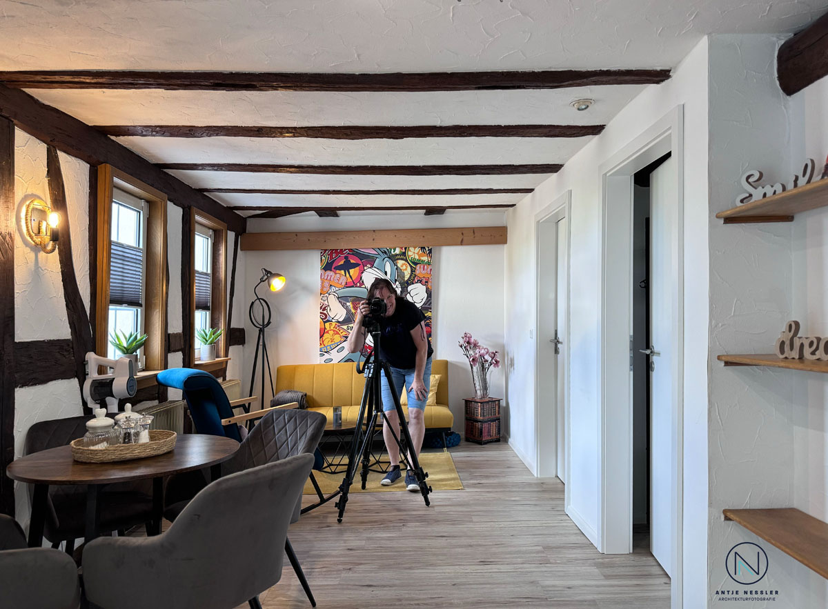 AN: „Für Außenaufnahmen von Gebäuden habe ich ein spezielles Architekturstativ, das nötig ist, um stürzende Linien zu vermeiden. Die erzeugen auf dem Foto nämlich immer den Eindruck, das Gebäude würde kippen. Zum Fotografieren habe ich mehrere Objektive, darunter auch ein 17mm Tilt & Shift-Objektiv, das perfekte Weitwinkel-Objektiv für größere Objekte. In Innenräumen setze ich oft mobile Blitze ein, um wirklich jeden Winkel ausleuchten zu können.“